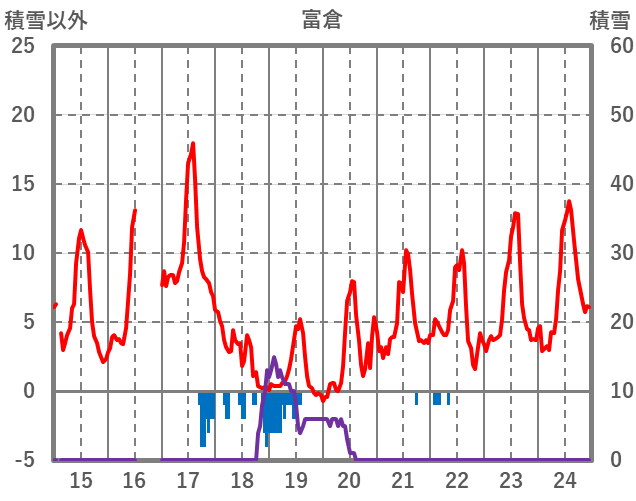 | 日 | 時 | 気温 | 降水 | 風向/風速 | 日照 | 積雪 | 降雪 |