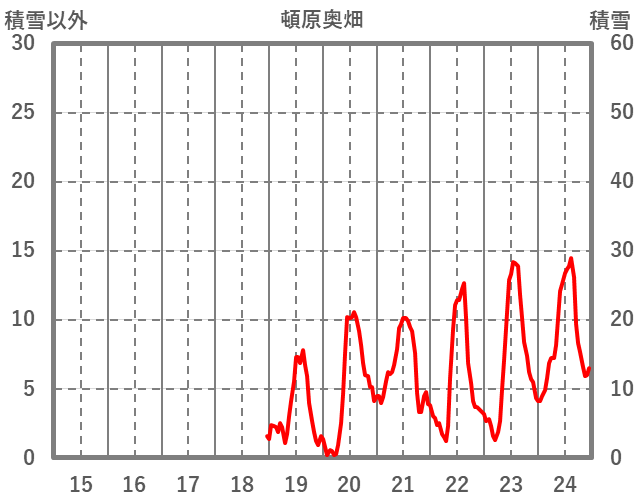| 日 | 時 | 気温 | 降水 | 風向/風速 | 日照 | 積雪 | 降雪 |