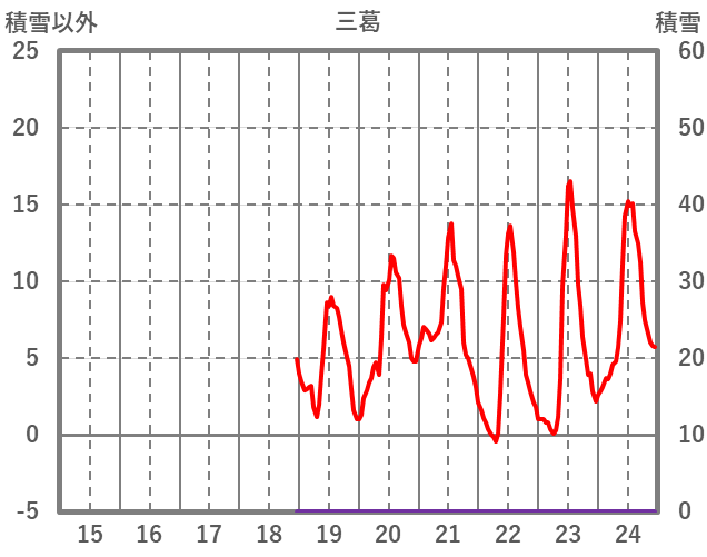 | 日 | 時 | 気温 | 降水 | 風向/風速 | 日照 | 積雪 | 降雪 |