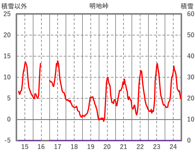| 日 | 時 | 気温 | 降水 | 風向/風速 | 日照 | 積雪 | 降雪 |