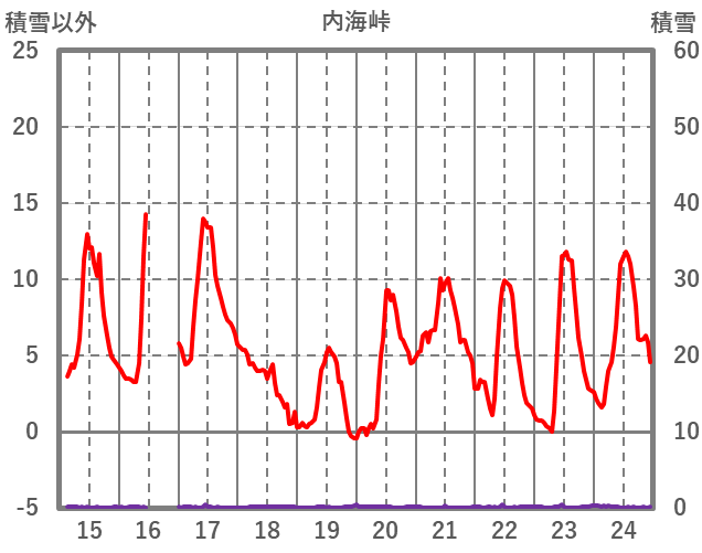 | 日 | 時 | 気温 | 降水 | 風向/風速 | 日照 | 積雪 | 降雪 |