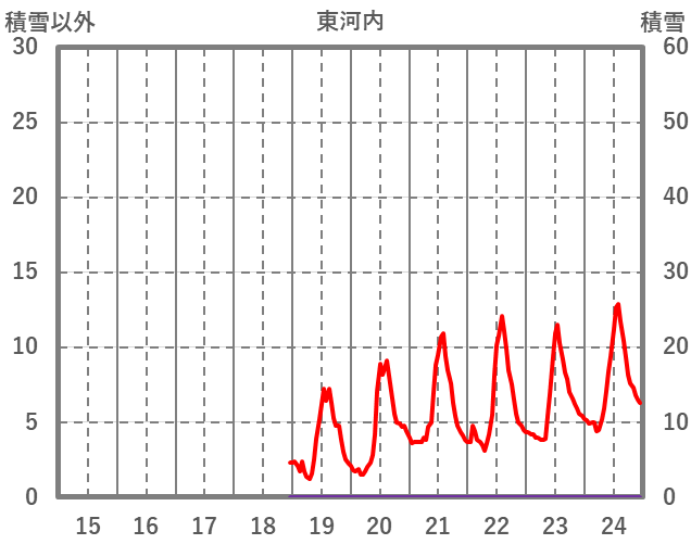 | 日 | 時 | 気温 | 降水 | 風向/風速 | 日照 | 積雪 | 降雪 |