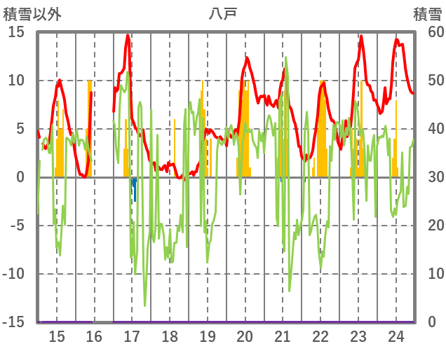 | 日 | 時 | 気温 | 降水 | 風向/風速 | 日照 | 積雪 | 降雪 |