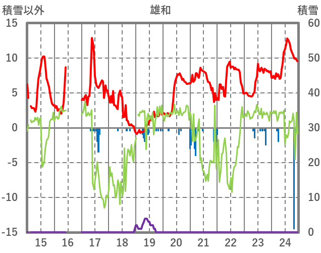 | 日 | 時 | 気温 | 降水 | 風向/風速 | 日照 | 積雪 | 降雪 |