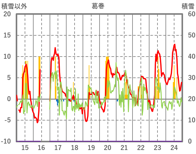 | 日 | 時 | 気温 | 降水 | 風向/風速 | 日照 | 積雪 | 降雪 |