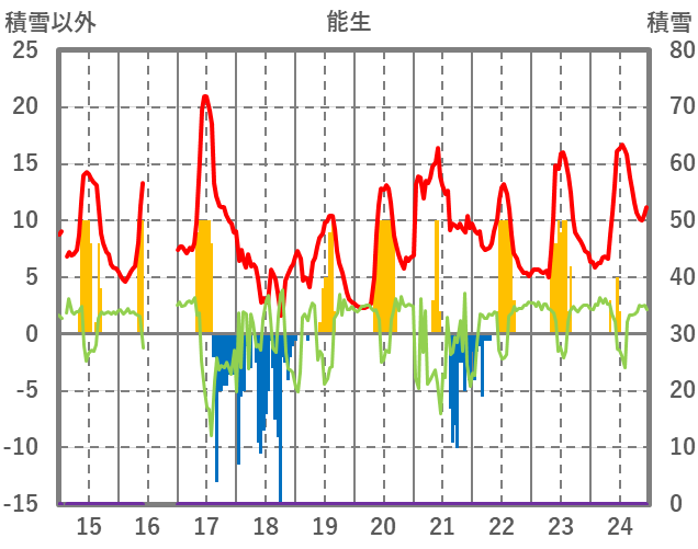 | 日 | 時 | 気温 | 降水 | 風向/風速 | 日照 | 積雪 | 降雪 |