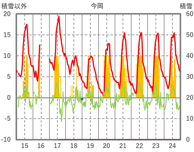 | 日 | 時 | 気温 | 降水 | 風向/風速 | 日照 | 積雪 | 降雪 |