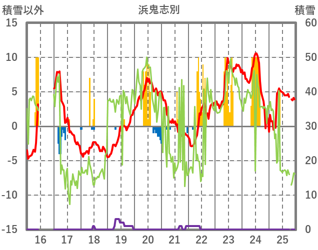 | 日 | 時 | 気温 | 降水 | 風向/風速 | 日照 | 積雪 | 降雪 |