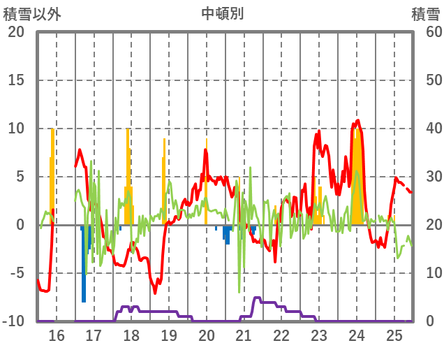 | 日 | 時 | 気温 | 降水 | 風向/風速 | 日照 | 積雪 | 降雪 |