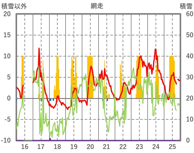 | 日 | 時 | 気温 | 降水 | 風向/風速 | 日照 | 積雪 | 降雪 |