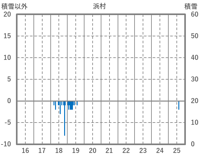 | 日 | 時 | 気温 | 降水 | 風向/風速 | 日照 | 積雪 | 降雪 |