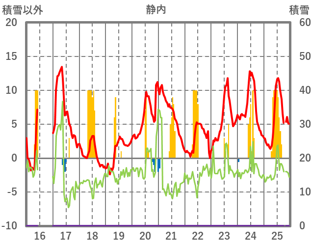 | 日 | 時 | 気温 | 降水 | 風向/風速 | 日照 | 積雪 | 降雪 |