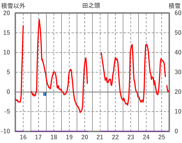 | 日 | 時 | 気温 | 降水 | 風向/風速 | 日照 | 積雪 | 降雪 |