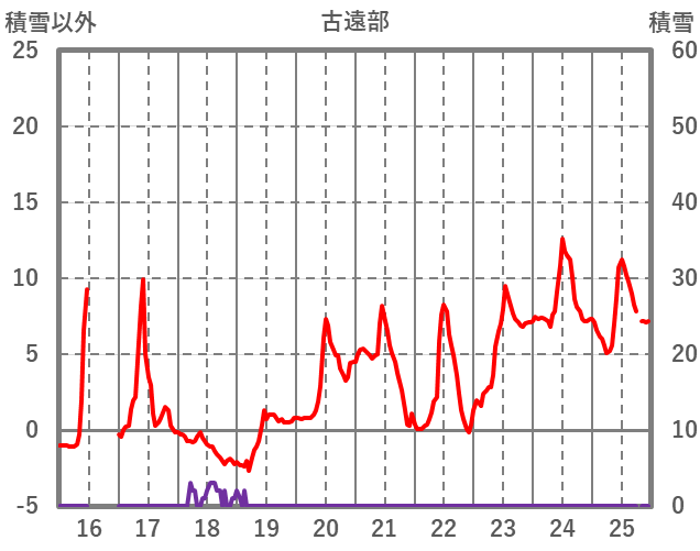 | 日 | 時 | 気温 | 降水 | 風向/風速 | 日照 | 積雪 | 降雪 |