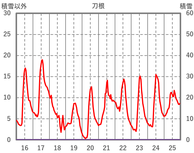 | 日 | 時 | 気温 | 降水 | 風向/風速 | 日照 | 積雪 | 降雪 |