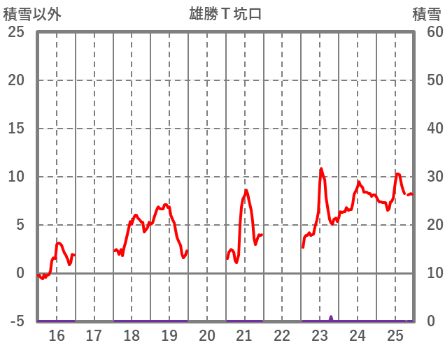 | 日 | 時 | 気温 | 降水 | 風向/風速 | 日照 | 積雪 | 降雪 |
