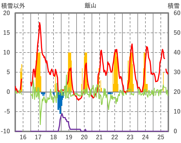 | 日 | 時 | 気温 | 降水 | 風向/風速 | 日照 | 積雪 | 降雪 |
