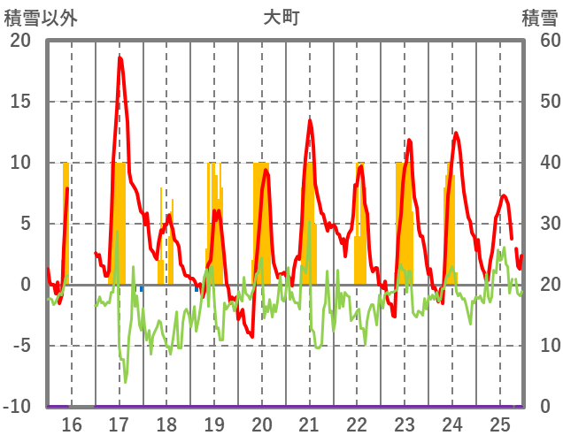 | 日 | 時 | 気温 | 降水 | 風向/風速 | 日照 | 積雪 | 降雪 |
