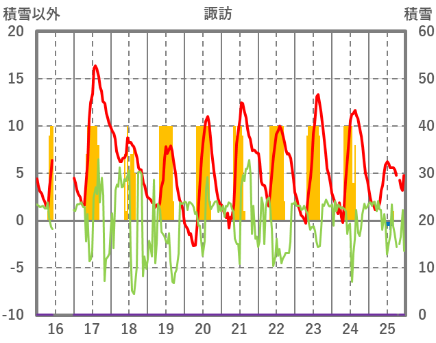 | 日 | 時 | 気温 | 降水 | 風向/風速 | 日照 | 積雪 | 降雪 |
