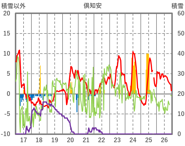 | 日 | 時 | 気温 | 降水 | 風向/風速 | 日照 | 積雪 | 降雪 |