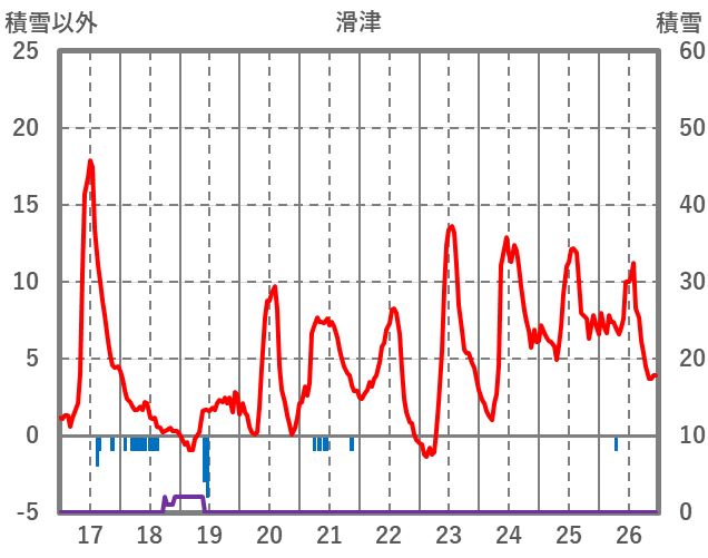 | 日 | 時 | 気温 | 降水 | 風向/風速 | 日照 | 積雪 | 降雪 |