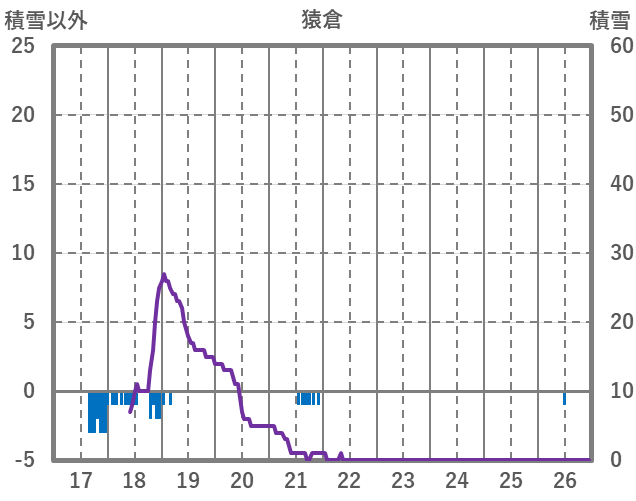 | 日 | 時 | 気温 | 降水 | 風向/風速 | 日照 | 積雪 | 降雪 |