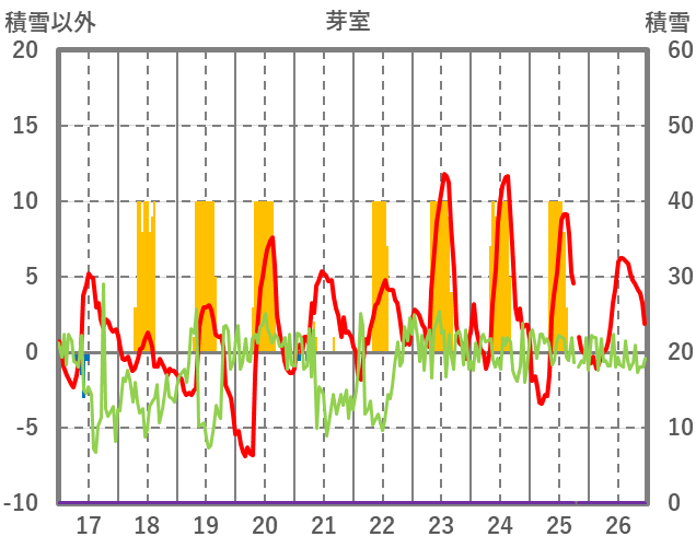| 日 | 時 | 気温 | 降水 | 風向/風速 | 日照 | 積雪 | 降雪 |
