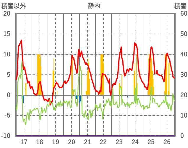 | 日 | 時 | 気温 | 降水 | 風向/風速 | 日照 | 積雪 | 降雪 |