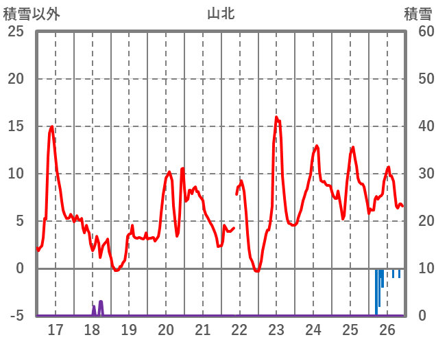 | 日 | 時 | 気温 | 降水 | 風向/風速 | 日照 | 積雪 | 降雪 |