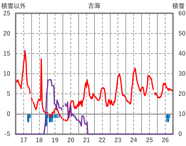 | 日 | 時 | 気温 | 降水 | 風向/風速 | 日照 | 積雪 | 降雪 |