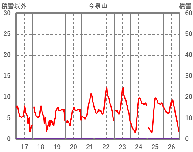 | 日 | 時 | 気温 | 降水 | 風向/風速 | 日照 | 積雪 | 降雪 |