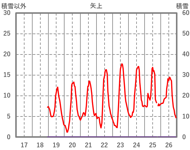 | 日 | 時 | 気温 | 降水 | 風向/風速 | 日照 | 積雪 | 降雪 |