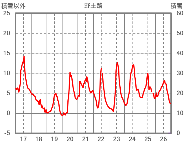 | 日 | 時 | 気温 | 降水 | 風向/風速 | 日照 | 積雪 | 降雪 |
