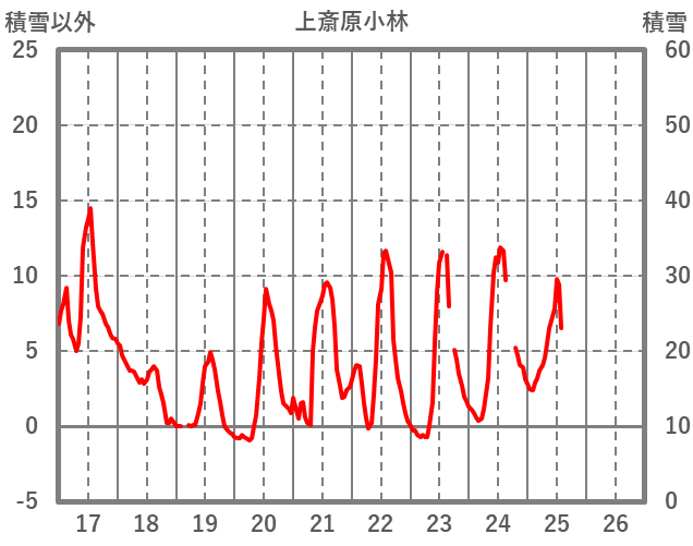 | 日 | 時 | 気温 | 降水 | 風向/風速 | 日照 | 積雪 | 降雪 |