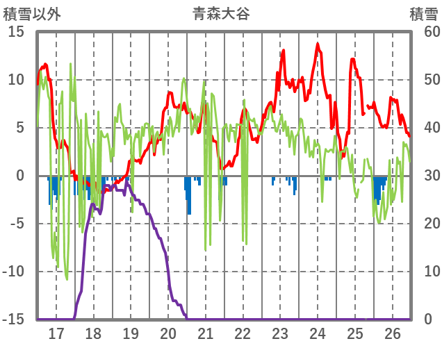 | 日 | 時 | 気温 | 降水 | 風向/風速 | 日照 | 積雪 | 降雪 |