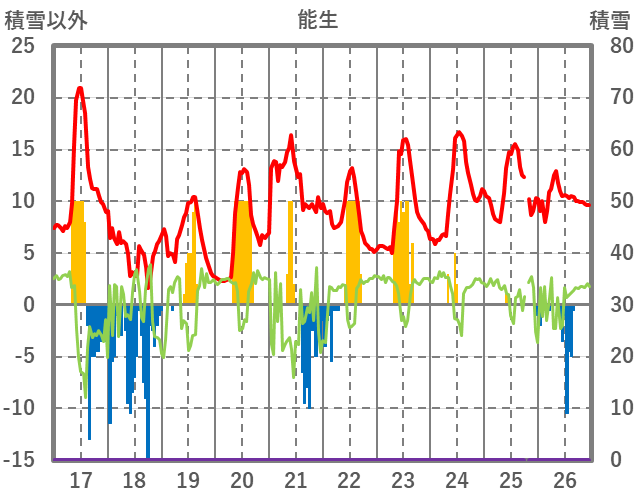 | 日 | 時 | 気温 | 降水 | 風向/風速 | 日照 | 積雪 | 降雪 |
