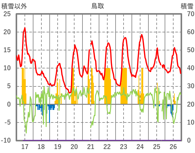 | 日 | 時 | 気温 | 降水 | 風向/風速 | 日照 | 積雪 | 降雪 |