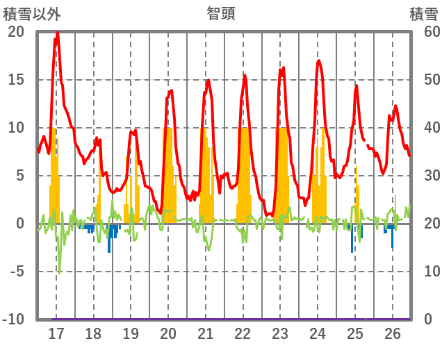 | 日 | 時 | 気温 | 降水 | 風向/風速 | 日照 | 積雪 | 降雪 |