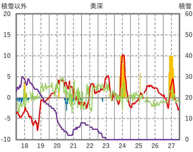 | 日 | 時 | 気温 | 降水 | 風向/風速 | 日照 | 積雪 | 降雪 |