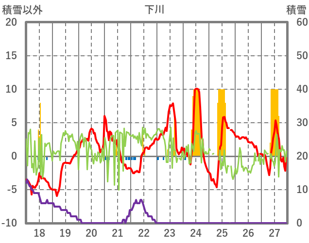 | 日 | 時 | 気温 | 降水 | 風向/風速 | 日照 | 積雪 | 降雪 |