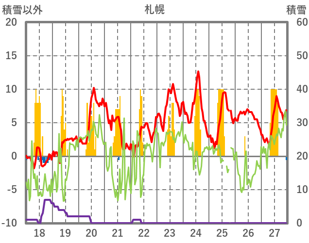 | 日 | 時 | 気温 | 降水 | 風向/風速 | 日照 | 積雪 | 降雪 |