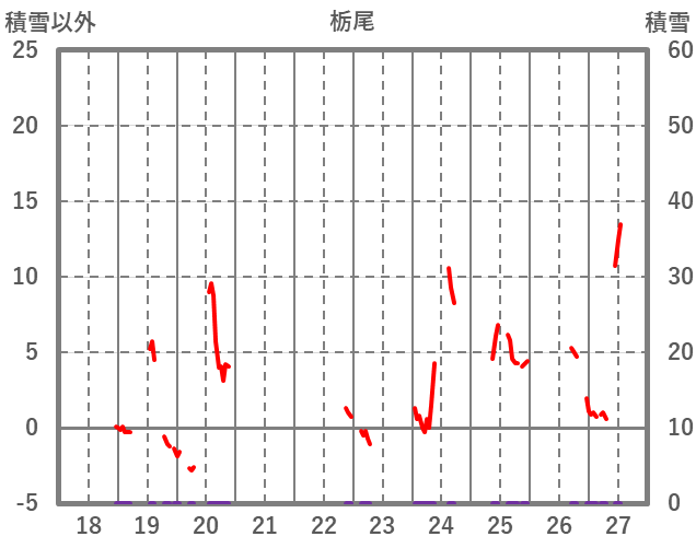 | 日 | 時 | 気温 | 降水 | 風向/風速 | 日照 | 積雪 | 降雪 |