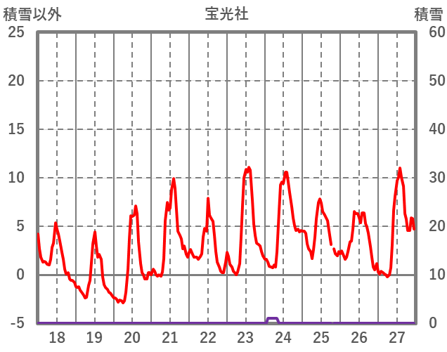 | 日 | 時 | 気温 | 降水 | 風向/風速 | 日照 | 積雪 | 降雪 |