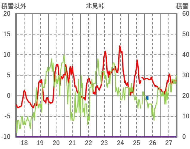 | 日 | 時 | 気温 | 降水 | 風向/風速 | 日照 | 積雪 | 降雪 |