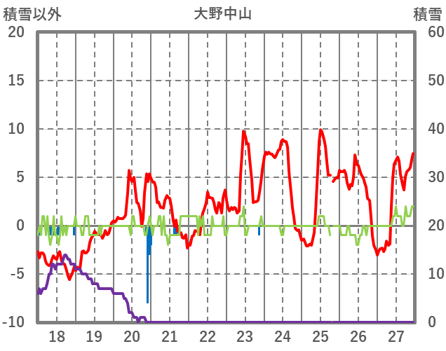 | 日 | 時 | 気温 | 降水 | 風向/風速 | 日照 | 積雪 | 降雪 |