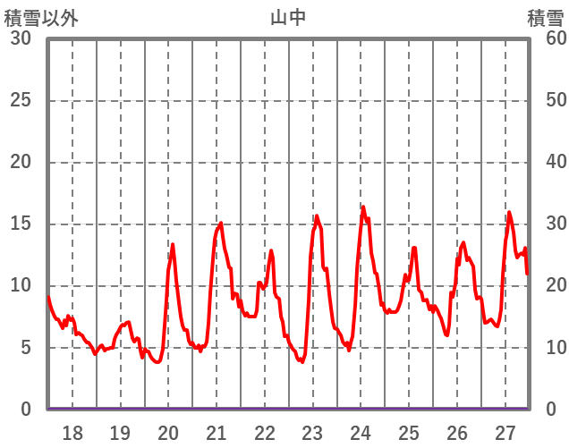 | 日 | 時 | 気温 | 降水 | 風向/風速 | 日照 | 積雪 | 降雪 |