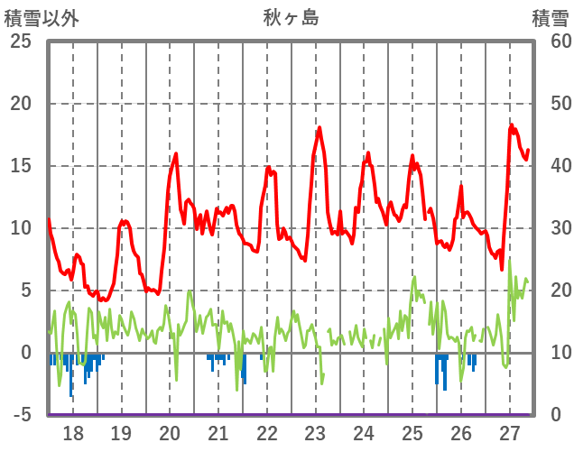 | 日 | 時 | 気温 | 降水 | 風向/風速 | 日照 | 積雪 | 降雪 |