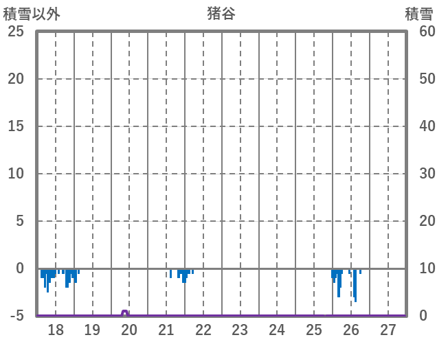 | 日 | 時 | 気温 | 降水 | 風向/風速 | 日照 | 積雪 | 降雪 |