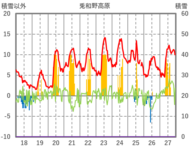 | 日 | 時 | 気温 | 降水 | 風向/風速 | 日照 | 積雪 | 降雪 |