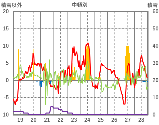 | 日 | 時 | 気温 | 降水 | 風向/風速 | 日照 | 積雪 | 降雪 |